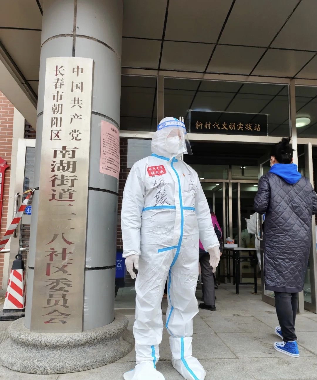 自3月9日起,王振建始终驻守在朝阳区南湖街道二二八社区,每天早晨6点出发,一直忙碌到深夜,协助社区人员开展走访排查,维护居民核酸检测秩序,核实居民身份信息,登记资料。在严格管控的同时,帮助小区居民搬运物资,提供生活便利。同时,安抚居民情绪,回应居民需求,社区成了他第二个家。