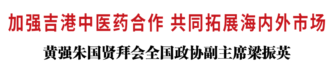 黄强、朱国贤向梁振英率领香港中医药考察团来吉调研表示欢迎。在简要介绍吉林经济社会发展和吉港两地交流合作情况后,黄强说,中医药是祖国的传统瑰宝,也是吉林的优势产业。今年5月,吉林省代表团访问香港,举办吉港澳经贸交流暨长白山人参推介活动,为双方增进交流、密切合作奠定了坚实基础。希望吉港两地进一步加强对接,携手擦亮人参“百草之王”千年金字招牌,合力推动中医药领域科研创新,共同拓展海内外市场。欢迎香港企业来吉投资中医药项目,我们将大力支持吉林企业入驻守创中药贸易平台。希望梁振英副主席和全国政协一如既往关心关注吉林,指导吉港两地政协委员发挥桥梁纽带作用、推动各领域交流合作,为两地人民带来更多福祉。